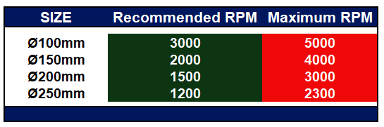 - Never use flap wheels in wet conditions or with coolants/oils.